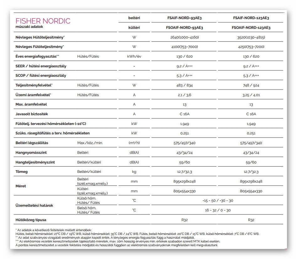 A Fisher FSAIF-NORD-93AE3 Nordic Inverteres Split klíma fontos tulajdonságai: